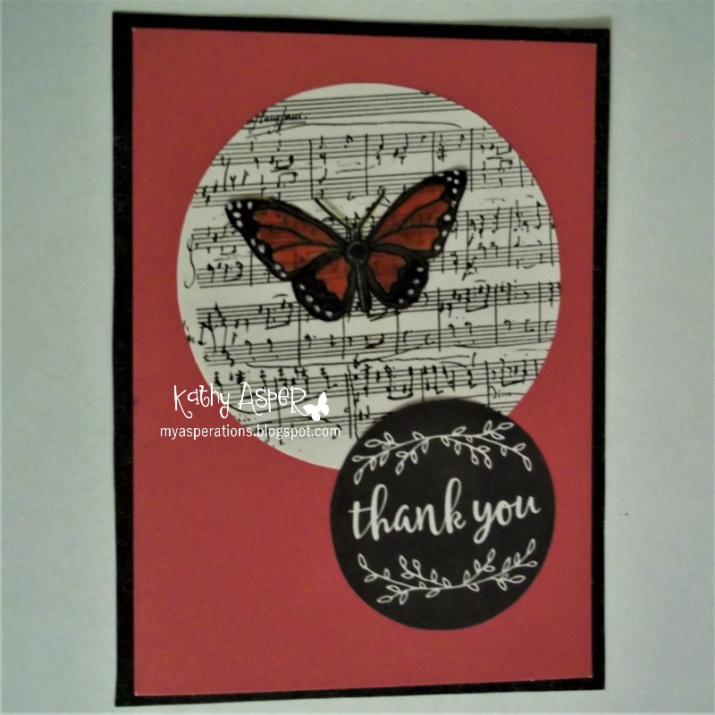 a card on Pinterest (link posted below), but my butterfly was stamped on vellum, because I wanted the music score to show through the delicate wings. (This translucency is one of the reasons that I love using vellum!) Instead